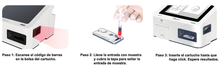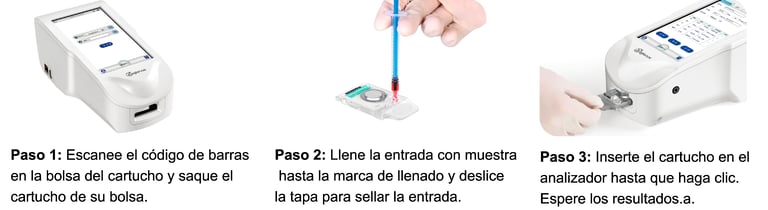 Almacenamiento conveniente: Los cartuchos de prueba se pueden almacenar a temperatura ambiente hasta por 8 meses.