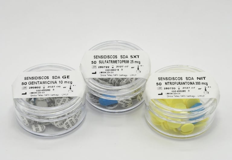 Los sensidiscos para diagnóstico in vitro permite determinar la susceptibilidad bacteriana mediante el método de difusión en agar estandarizado por el CLSI. Disponibles en presentaciones de 50 unidades, en frasco o dispensador, estos discos de celulosa impregnados garantizan precisión y repetibilidad en la medición de halos de inhibición. Su fabricación bajo estrictos controles con cepas ATCC asegura resultados confiables para la orientación de tratamientos antibióticos en el laboratorio clínico.